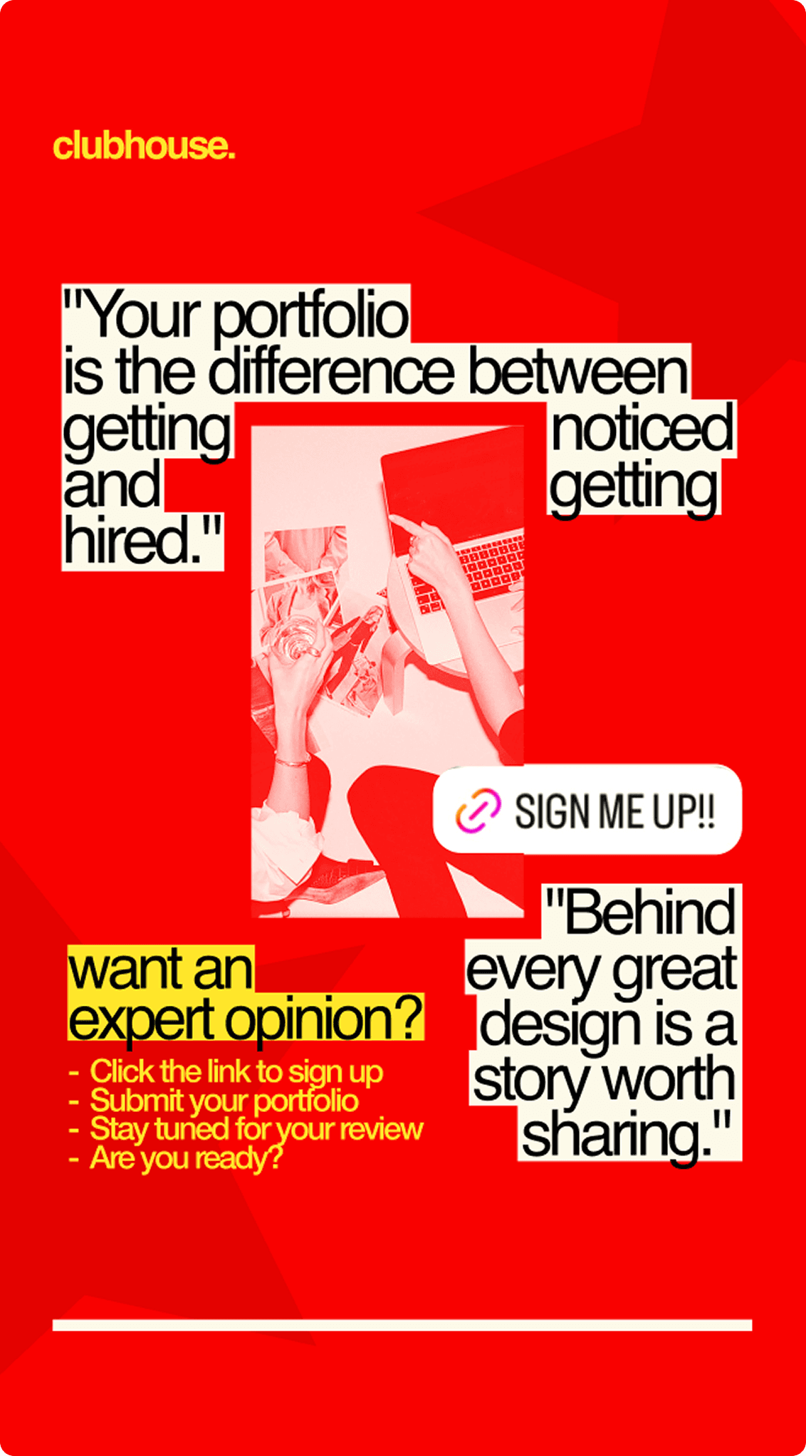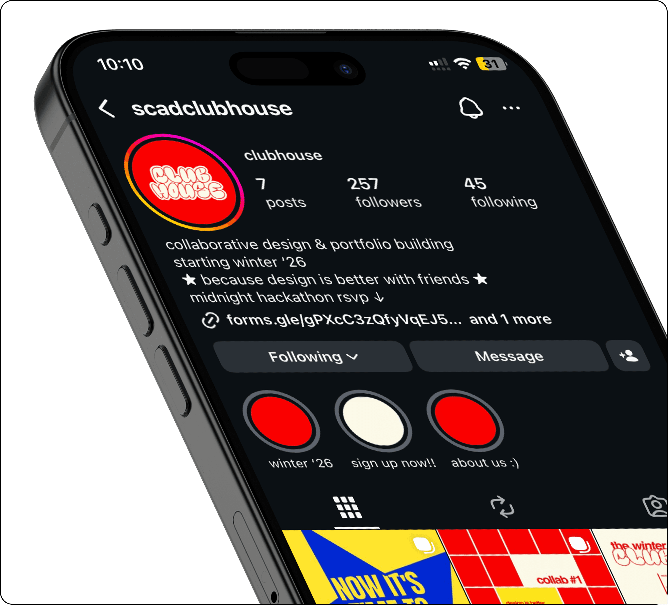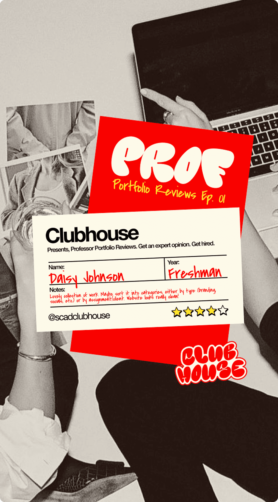 Clubhouse is a student-led portfolio development club focused on collaboration—where designers come together to share work, give feedback, and grow through community.