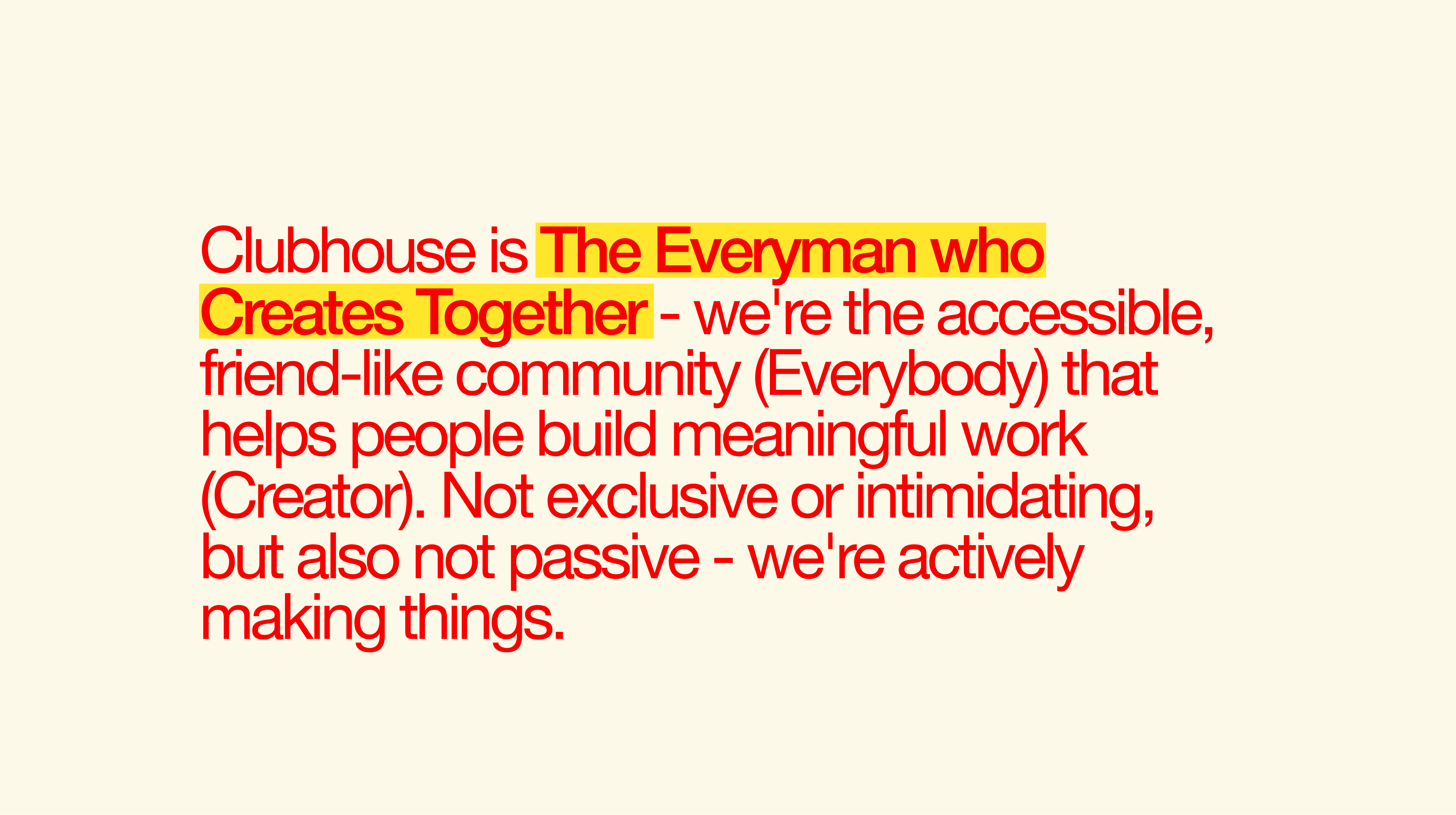 Early on, the brand felt more like a concept than a personality, so we refined it to define who Clubhouse is—building a clearer voice, tone, and identity.