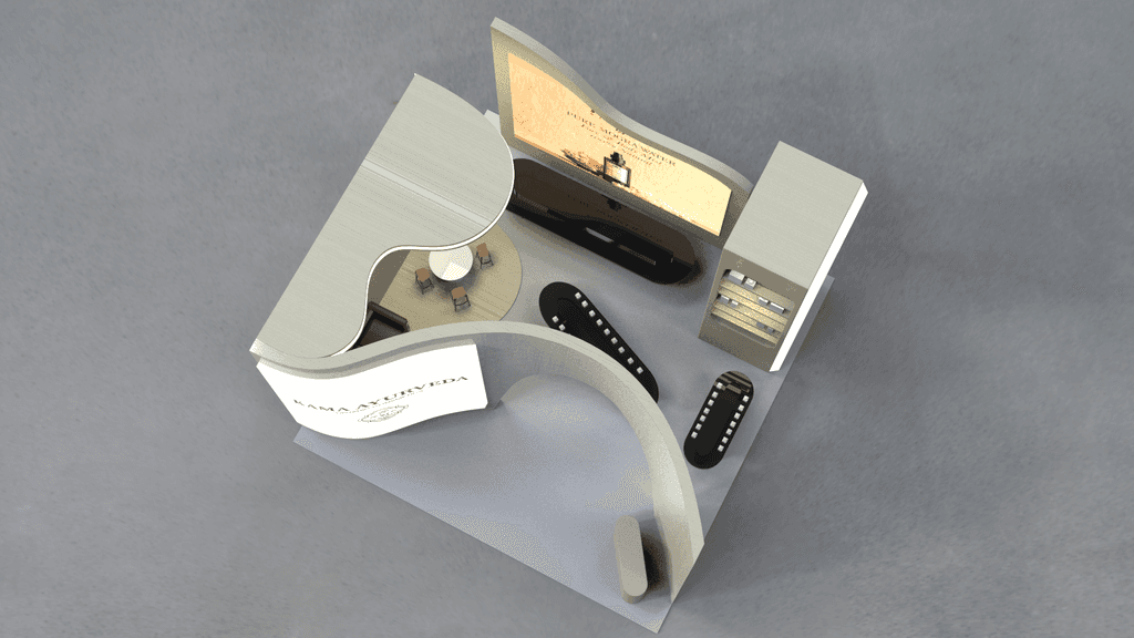 Designed a sensory-rich trade show booth for Kama Ayurveda using Rhino and Keyshot. Inspired by natural forms and wellness rituals, the space embodies calm, luxury, and heritage.